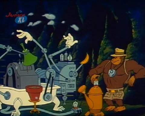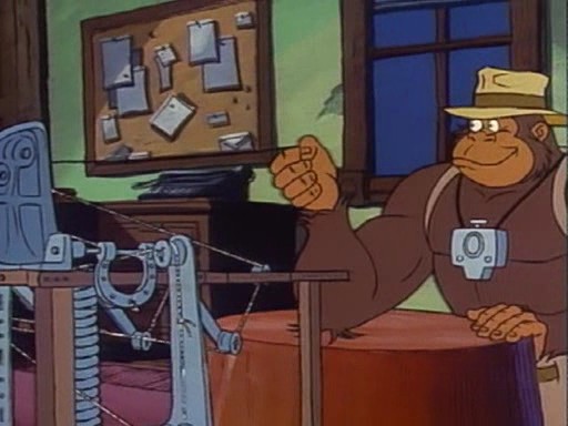 Tracy hat das Skeleskop fertig; und das hat einen ganz eigenen Humor. So ganz begeistert ist Tracy davon allerdings nicht! Nunja, auch ein Gorilla möchte, daß seine Erfindungen vernünftig arbeiten…