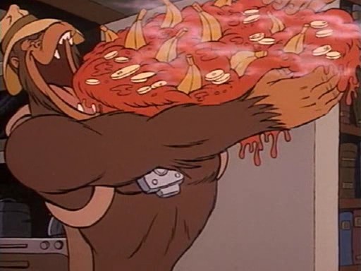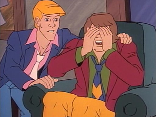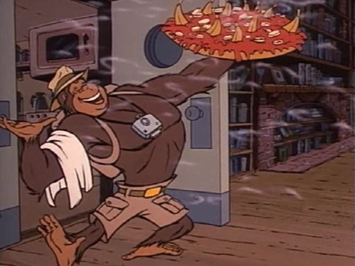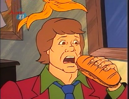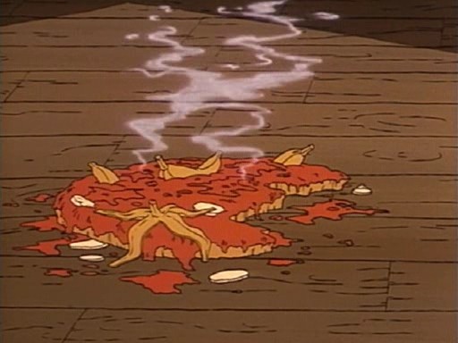 Als die Ghostbusters los müssen zum Einsatz, bietet Eddie Belfry die Pizza als Trost dafür an, daß er zu Hause bleiben muß. Daß Belfry das nicht von den Socken haut - zumal die Pizza nun auch noch auf dem Boden gelandet ist - kann ich allerdings auch verstehen! ^^