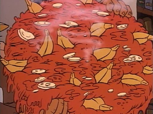Tracy macht Bananenpizza – sehr zum Entsetzen von Eddie, der schon keine Bananen mehr sehen kann. Nun gut, wenn man bedenkt, daß Tracy auch keine Skrupel hat, die Bananen mit Schale auf der Pizza zu verarbeiten, kann ich Eddie verstehen. Hier muß Jake jedenfalls erst mal tröstend eingreifen.
