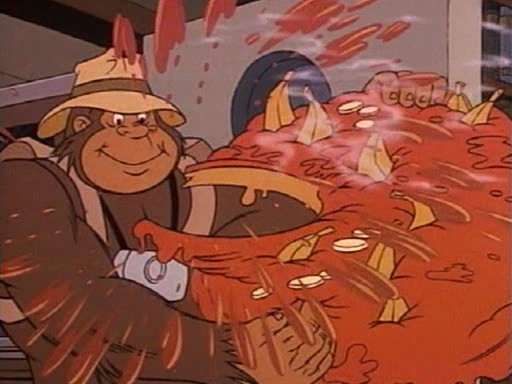 Die Ghostbusters begutachten bei Madame Toutout ihre Wachsfiguren. Wie kaum anders zu erwarten, wird Tracy auch hier mit einer Banane dargestellt. Und tatsächlich kann Tracy sich nicht beherrschen und entwendet seinem Wachs-Ich die Banane. Eddie macht ihn vorsichtig darauf aufmerksam, daß man die Banane nicht essen kann, da sie auch aus Wachs ist. Glücklicherweise beherzigt Tracy den Rat; leider schmilzt die Banane aber in seinen Händen.