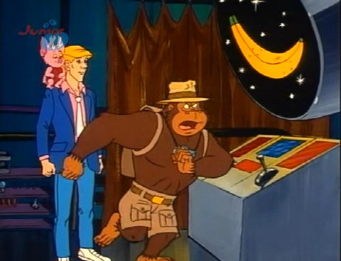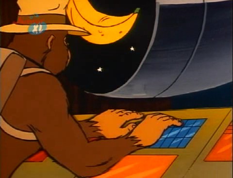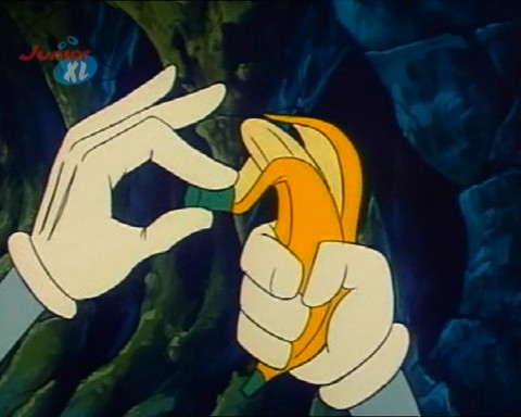 Als Tracys Verwandlungshut zum Einsatz kommt, bringt Eddy aus dem Hut eine Hand Bananen wieder mit raus. Tracy scheint es sogar ein bißchen peinlich zu sein, zumindest läßt er die Bananen schnell wieder im Hut verschwinden.