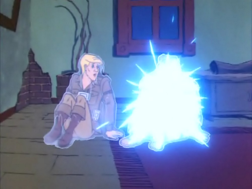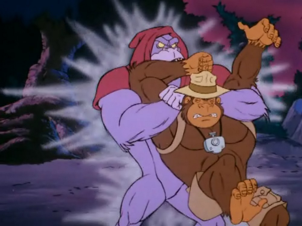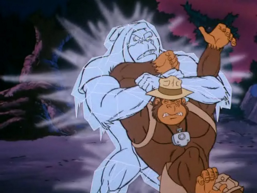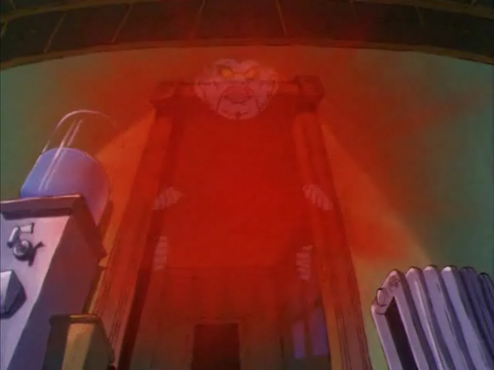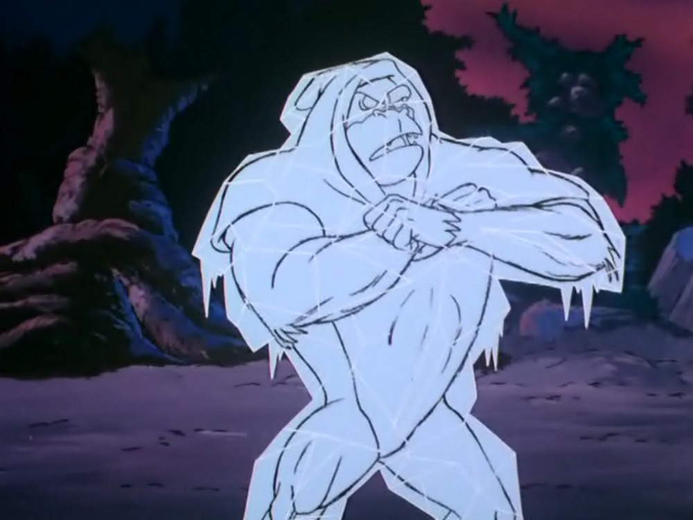 Hier sehen wir die Szene auf Gorillium noch einmal in der Variante des Gedankenmanipulators: In dieser Version ist es Tracy, der von Fright Freezer getroffen wird. Glücklicherweise ist dies so nie passiert, sondern nur eine »Illusion« von Prime Evil.