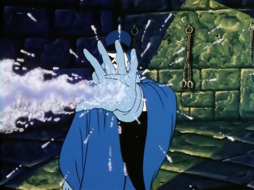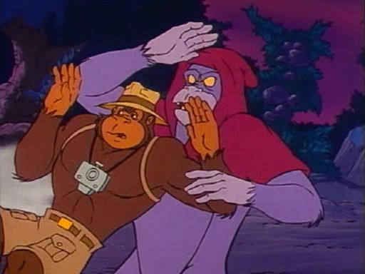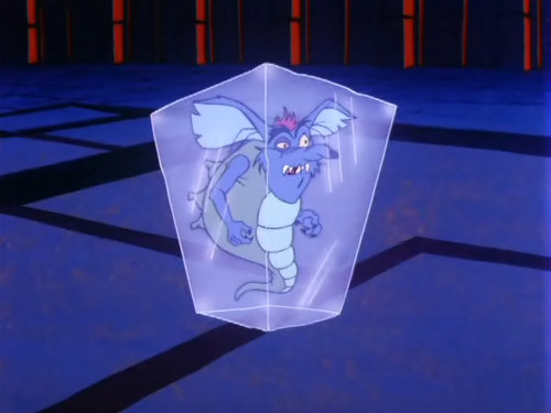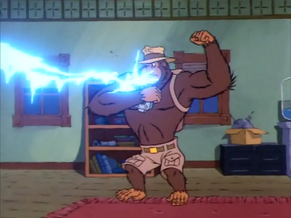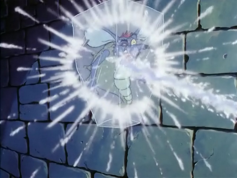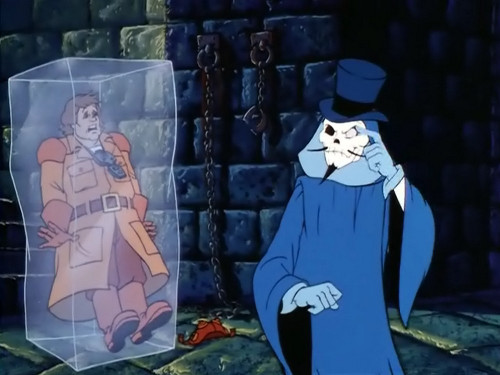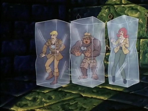 Hier sehen wir die Szene auf Gorillium noch einmal in der Variante des Gedankenmanipulators: In dieser Version ist es Tracy, der von Fright Freezer getroffen wird. Glücklicherweise ist dies so nie passiert, sondern nur eine »Illusion« von Prime Evil.