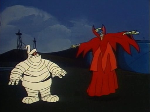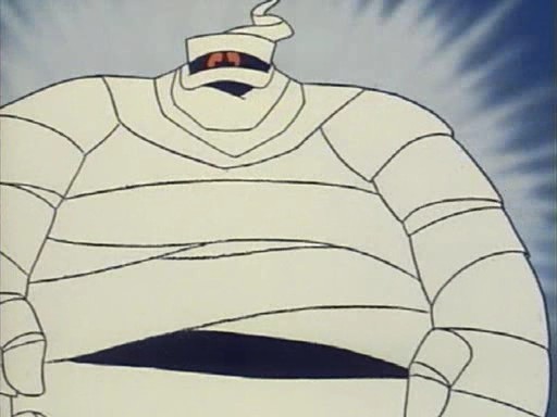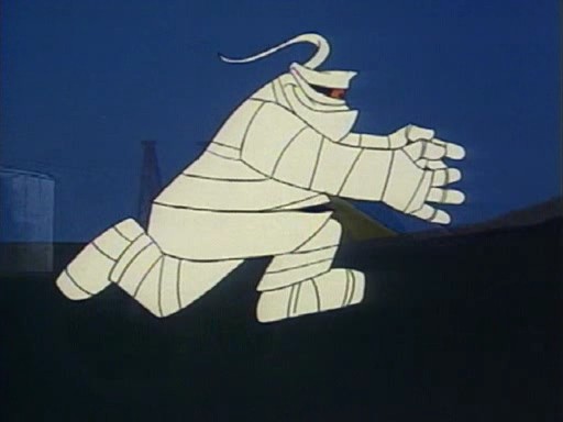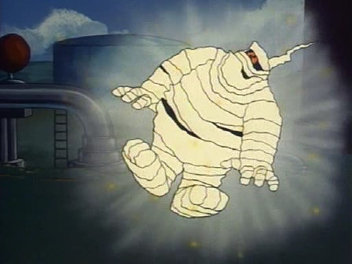 Und später lassen die Ghostbuster die Mumie durch einen Trick auf Miniaturgröße schrumpfen, indem sie sie in die Autowaschanlage locken. Der Plan geht auf: Hier läuft die Mumie ein, und der Effekt Prime Evils schlägt genau ins Gegenteil um.