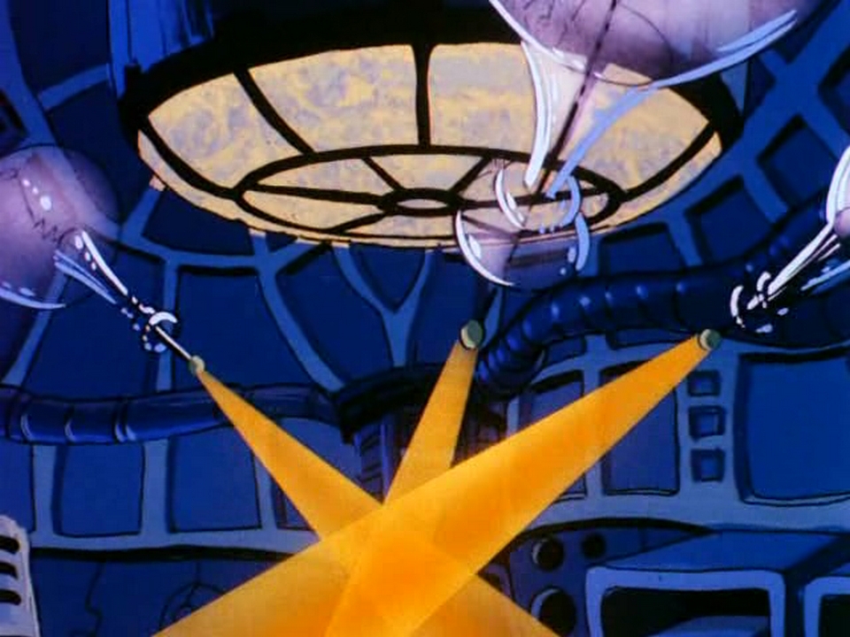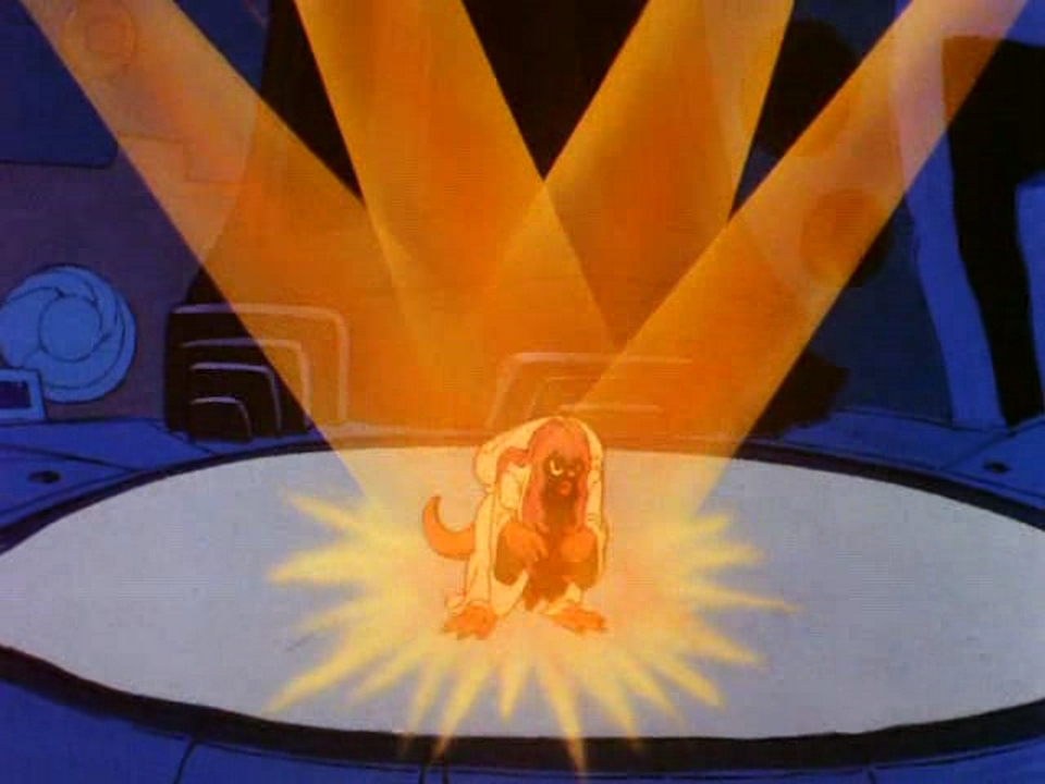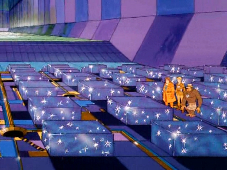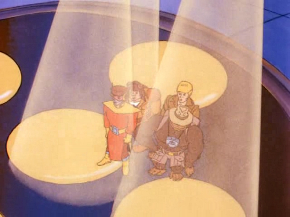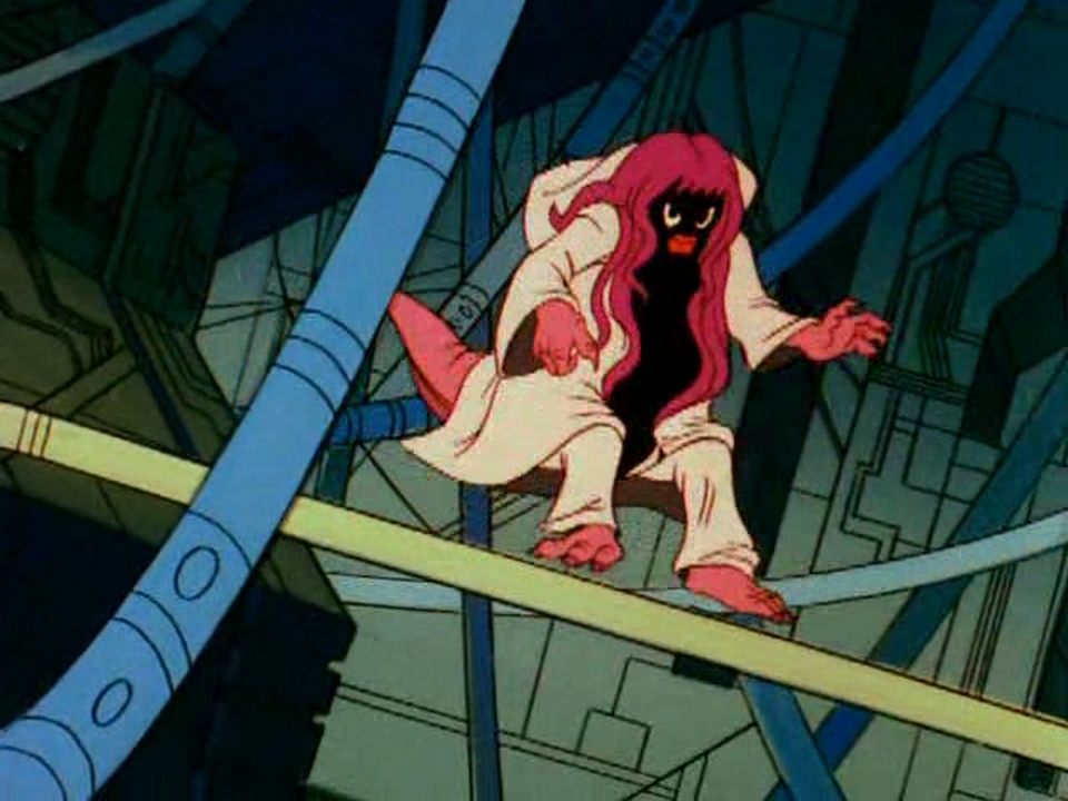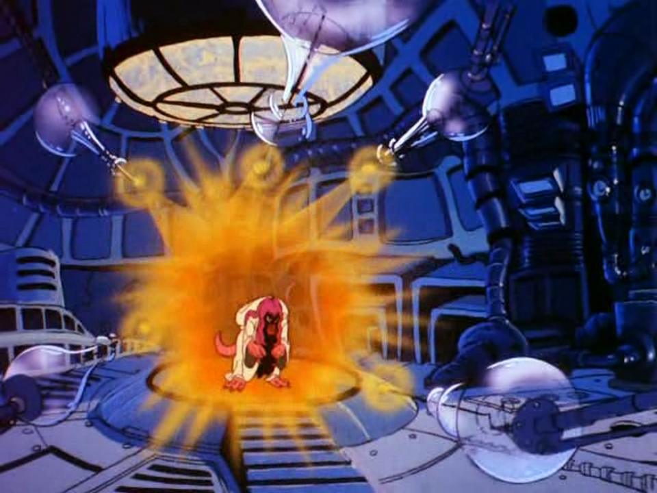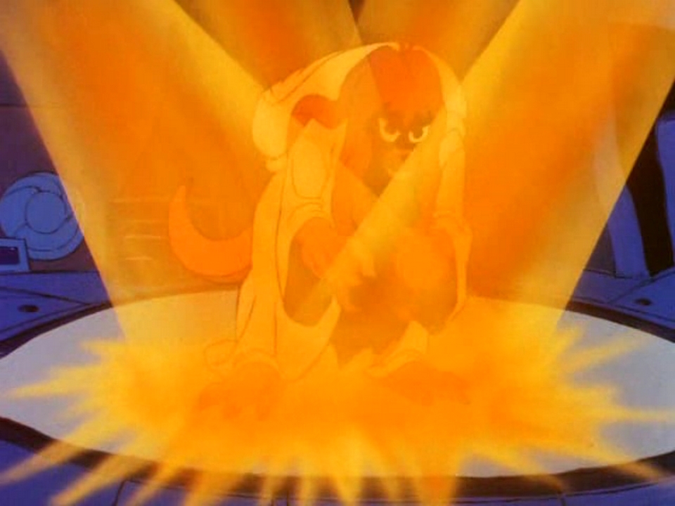Nicht immer ist der Schrumpfungsprozeß ungewollt: Hier zum Beispiel schrumpft Cyman seinen Begleiter Spectri, damit der im Computer der Crusader sein Unwesen treiben kann.