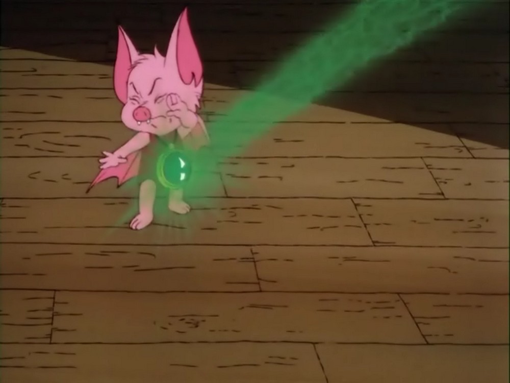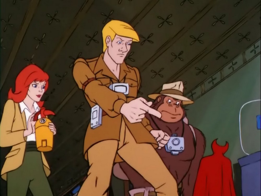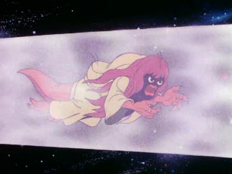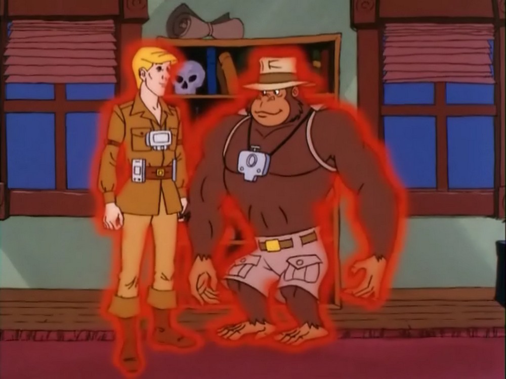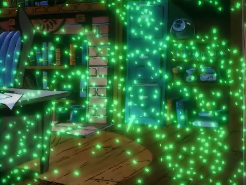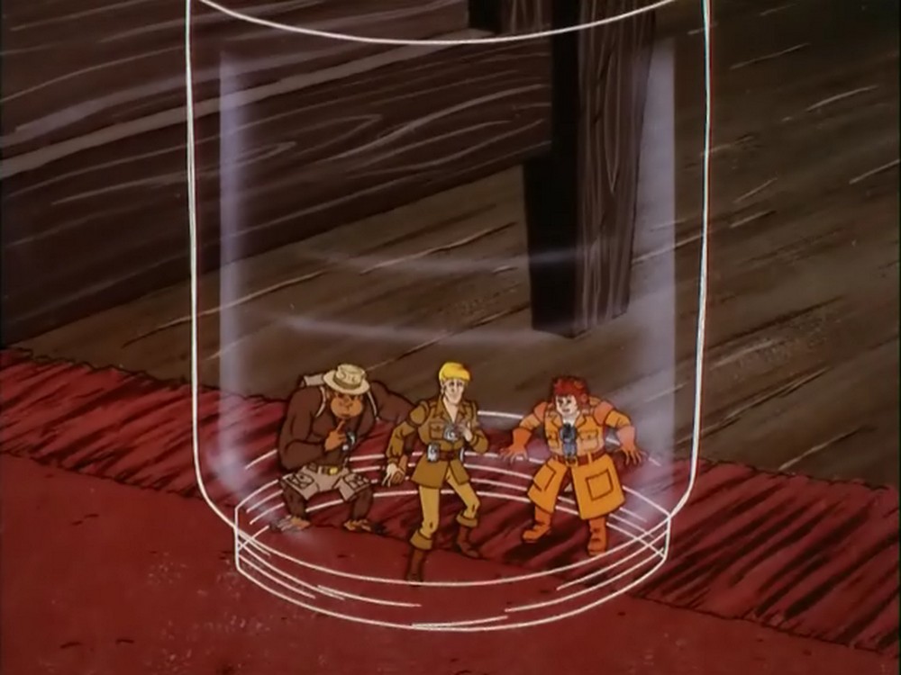 Nicht immer ist der Schrumpfungsprozeß ungewollt: Hier zum Beispiel schrumpft Cyman seinen Begleiter Spectri, damit der im Computer der Crusader sein Unwesen treiben kann.