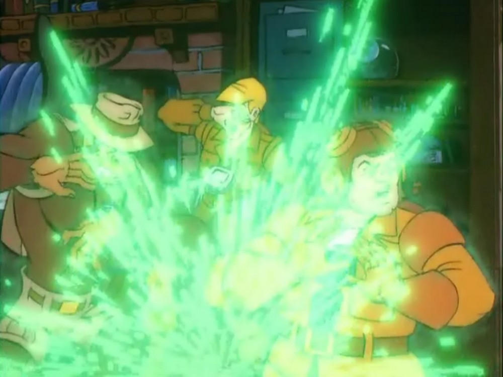 Auch die Ghostbuster schrumpfen sich – wenn auch gezwungenermaßen, um Spectri im Computer der Crusader das Handwerk zu legen. Hierzu hat Tracy einen Transporter modifiziert:
