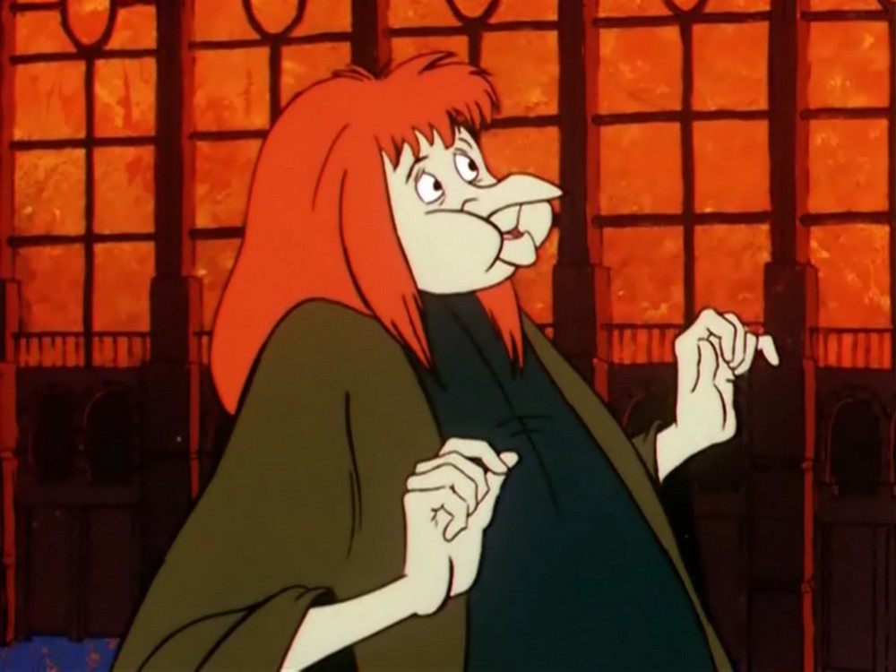 Hier etwas im übertragenen Sinne, aber auch das ist eine Verwandlung, die eine etwas andere Perspektive zur Folge hat: Sarsella die Hexe hat die Möglichkeit, Leute in Kinder zurückzuverwandeln.