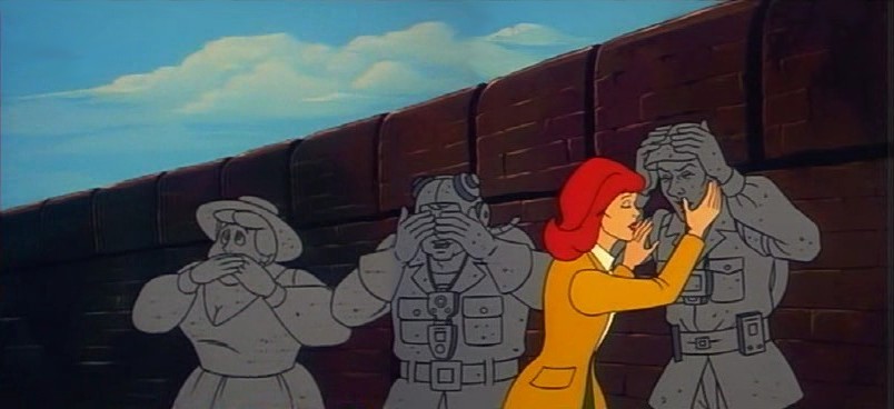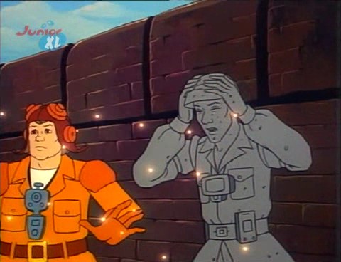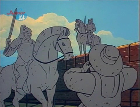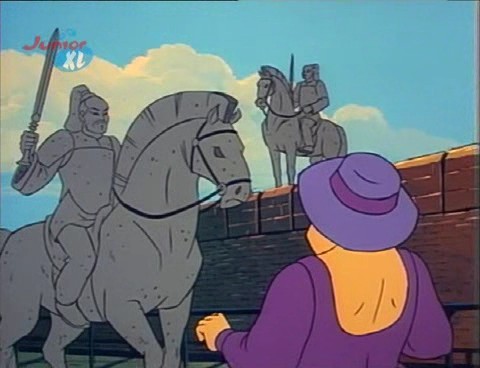 Die beiden holen die Ghostbuster zu Hilfe. Das Team verschafft sich einen Überblick, sowohl in der Halle des Drachen, als auch auf der großen Mauer, wo die zu Stein erstarrte Frau steht. Jake macht Geisteraktivitäten aus – und Eddie weiß warum: Die Steinkrieger sind wieder unterweg!