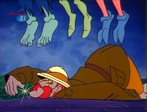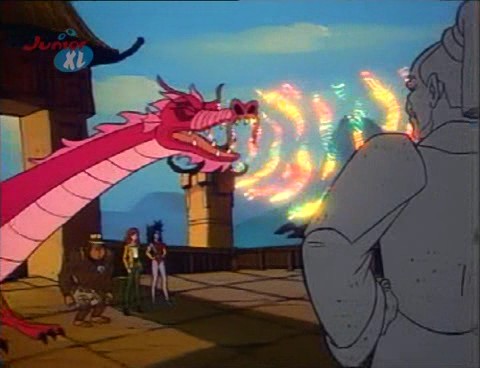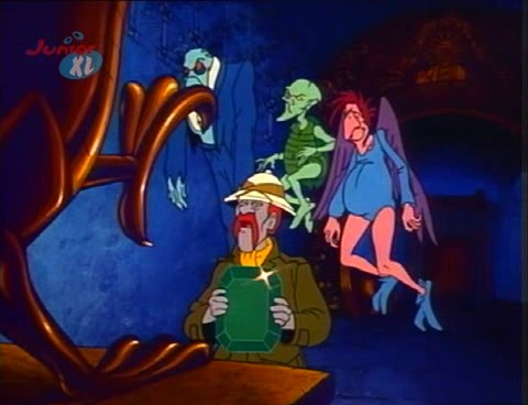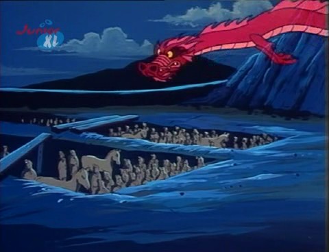 Während der Drache in der Halle zurückbleibt, machen sich die Ghostbuster auf die Suche nach dem Juwel. Als sie es finden, müssen sie sich gegen die Geister behaupten, doch sie haben Erfolg, und können das Juwel wohlbehalten an den Steinkrieger des Drachen aushändigen