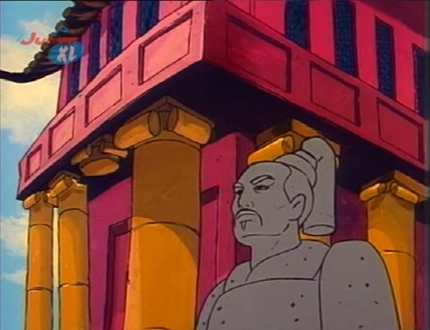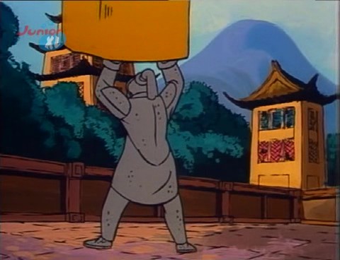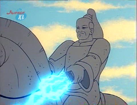Hier geht es um Kraft. Eine Aufgabe für Tracy. Er soll gegen den Steinkrieger des Drachen antreten. Gewinner ist derjenige, der es schafft, das Dach des Tempels zu stemmen.