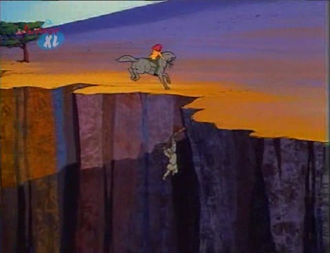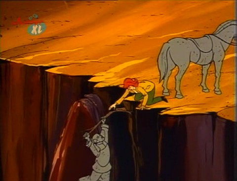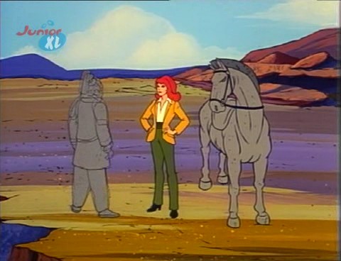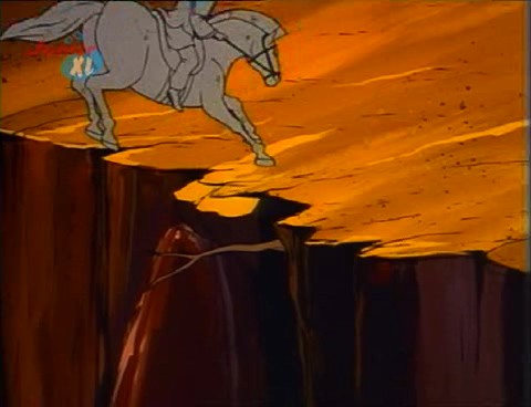 Die zweite Prüfung fordert Mut. Jessica muß gegen den Steinkrieger zu Pferde antreten und eine große Schlucht überspringen!
