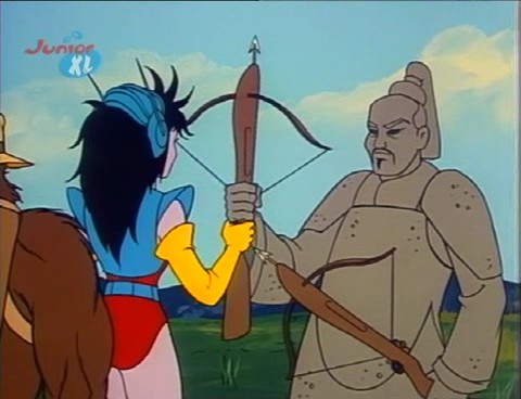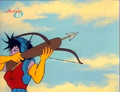 Die dritte Prüfung hat mit Geschicklichkeit zu tun. Nun ist Futura dran und muß sich gegen den Steinkrieger im Armbrustschießen bewähren. Doch sie hat noch nie eine Armbrust in der Hand gehabt! – Tracy bietet ihr den Laserpfeil an, um den Wettbewerb zu gewinnen. Dies lehnt sie jedoch entschieden ab.