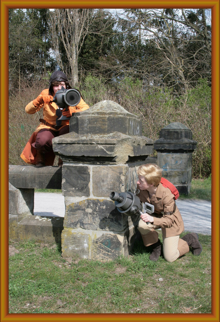 Lederarbeiten: Schnelle Hilfe, als sie nötig war, kam auch vom Flickschuster, Bahnhofstraße 29, 27305 Bruchhausen-Vilsen! Er hat mir zwischendurch, kurz vor der zweiten Fotosession, noch schnell den Gürtel auf die richtige Länge gekürzt, und auch bei der Modifikation der Fliegermütze hatte ich Unterstützung vom ihm! ^^ |