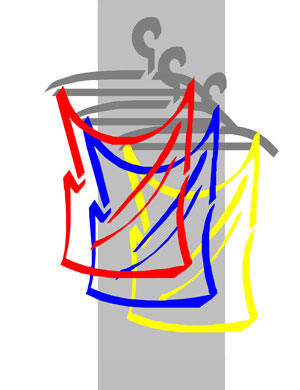 • Eddies Krawatte, dunklere Variante → Dies ist die Variante, die ich auch üblicherweise trage, da sie farblich besser in's Gesamtbild paßt als die zweite Variante aus Seide. Diese habe ich nach einem Muster zusammen mit meiner Mutter genäht, wobei ich zugeben muß, daß ihr dabei der größere Anteil der Arbeit zugefallen ist.