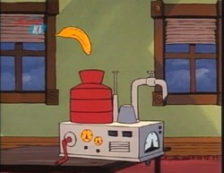Dies darf in keinem Gorillahaushalt fehlen: Mit dieser Maschine kann man Bananeneis herstellen. Diese Maschine ist übrigens Flederschweinbetrieben. ^^