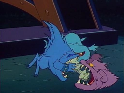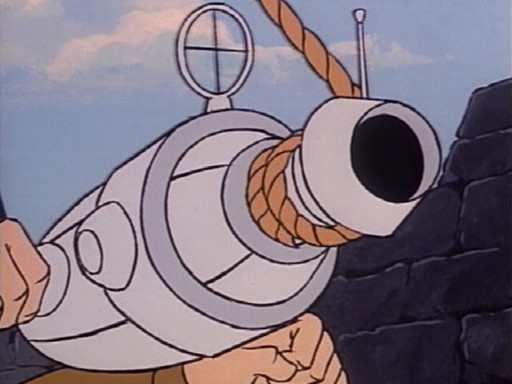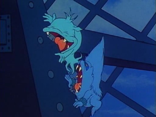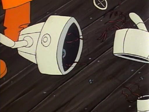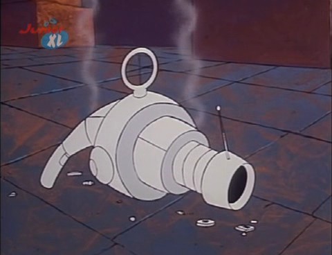Ursache: Jake bietet hier den Tooth Scaries freiwillig den Dematerialisator als Alternative zum Fraß an, um den Eiffelturm zu schützen. Von den Tooth Scaries bleibt wunschgemäß nichts übrig – vom Dematerialisator allerdings auch nicht.