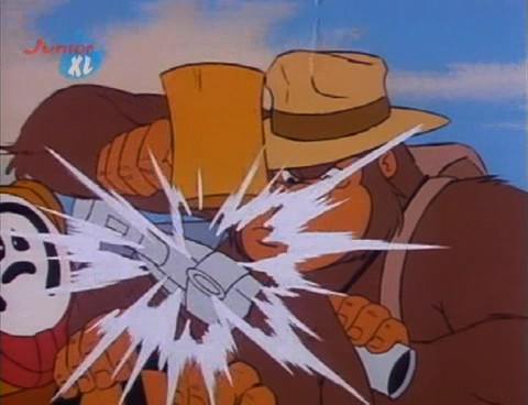 Ursache: Hier feuert Gimgul Jake den Dematerialisator aus der Hand. Dieser bleibt aber unversehrt, und Jake kann ihn einen Augenblick später gegen Gimgul einsetzen.