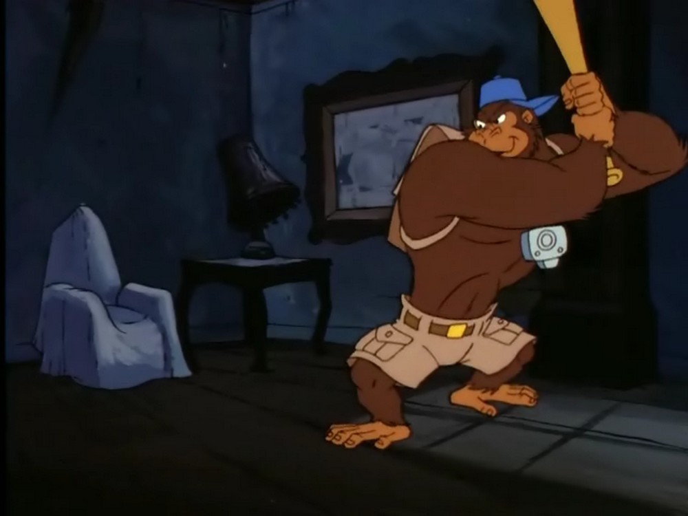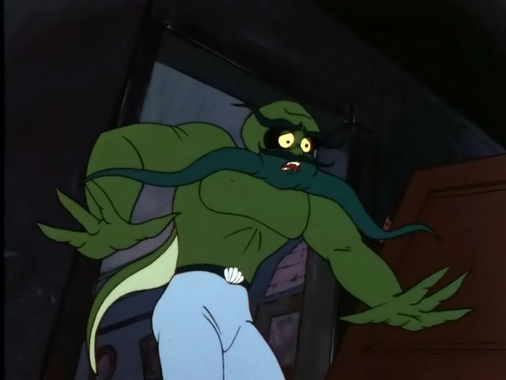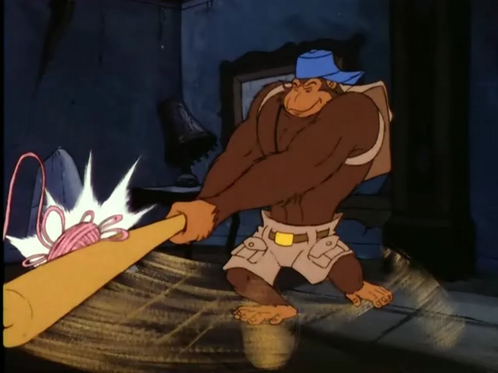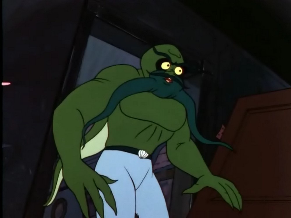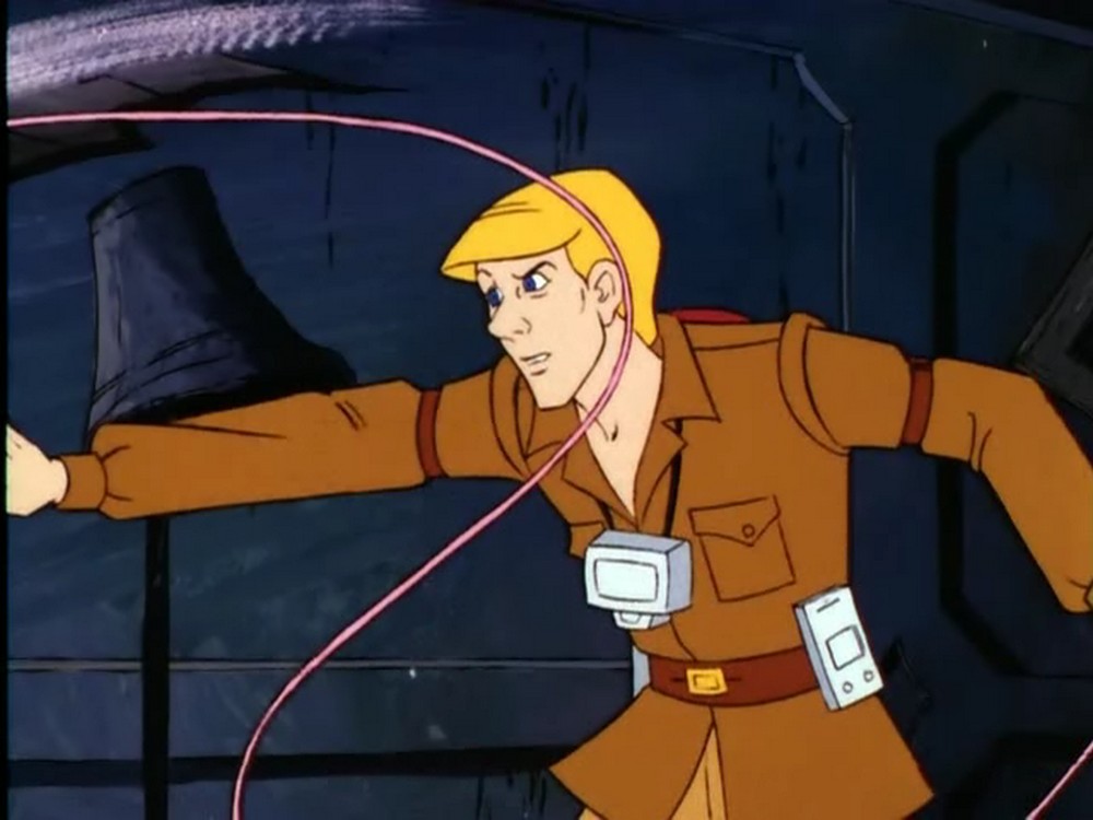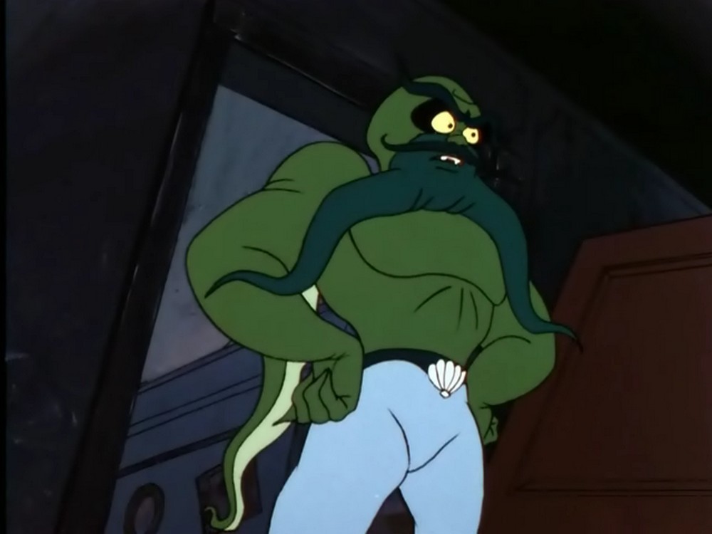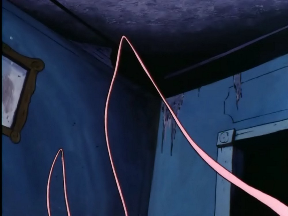 Zumindest nehme ich an, daß es sich hier um eine spezielle Garnrolle zum Geisterfangen handelt. Eventuell funktioniert sie ähnlich wie Ghostgum – der Farbe und der gummihaften Dynamik nach zu urteilen. Hier setzt Jake die Garnrolle erfolgreich gegen Mister Squit ein: