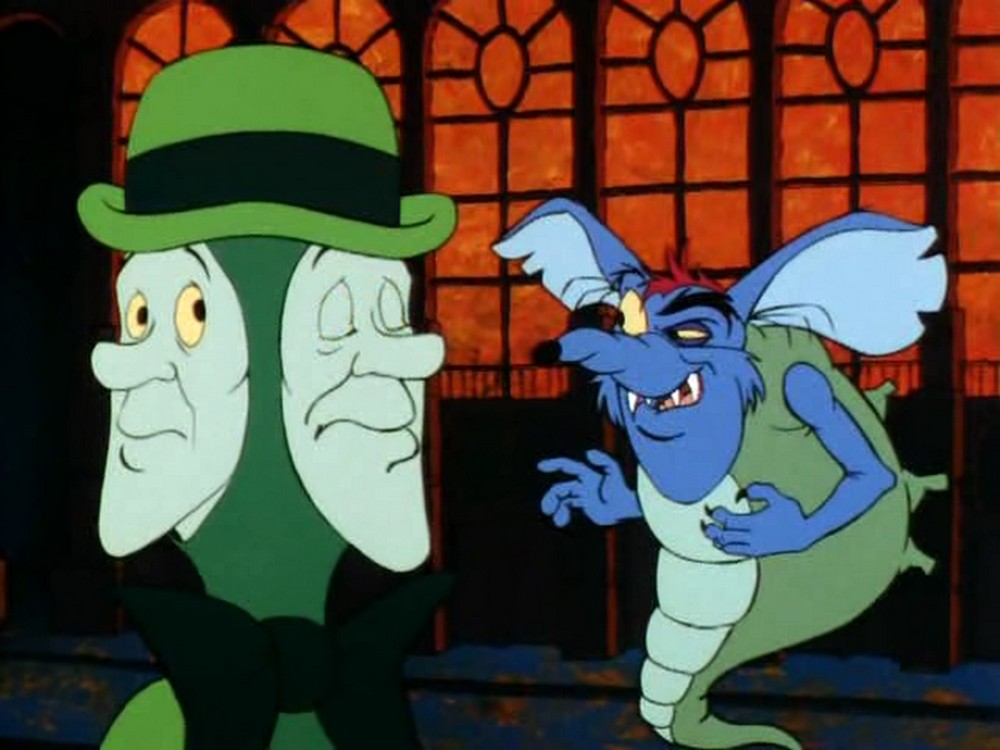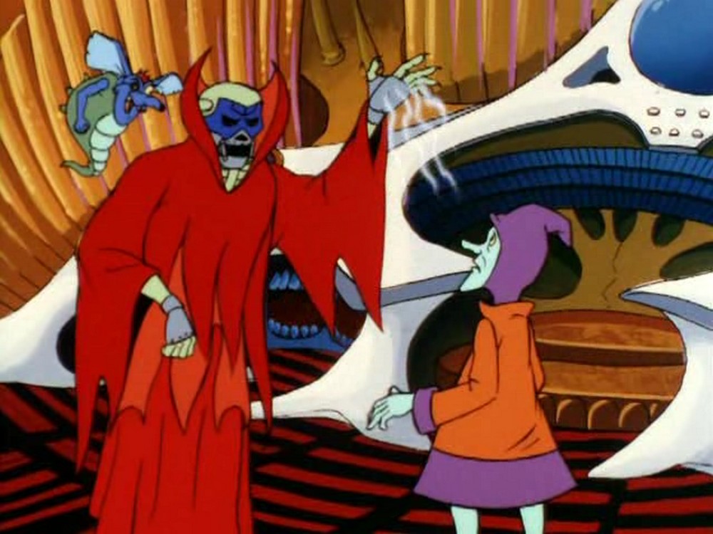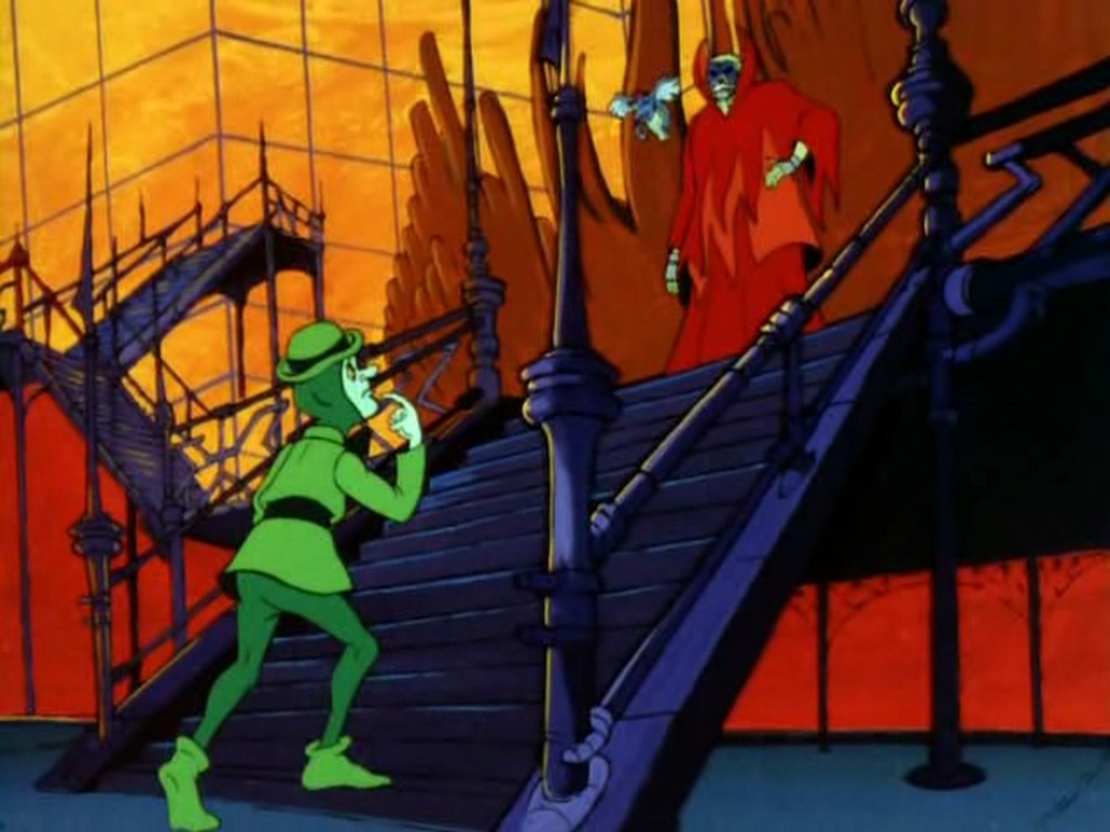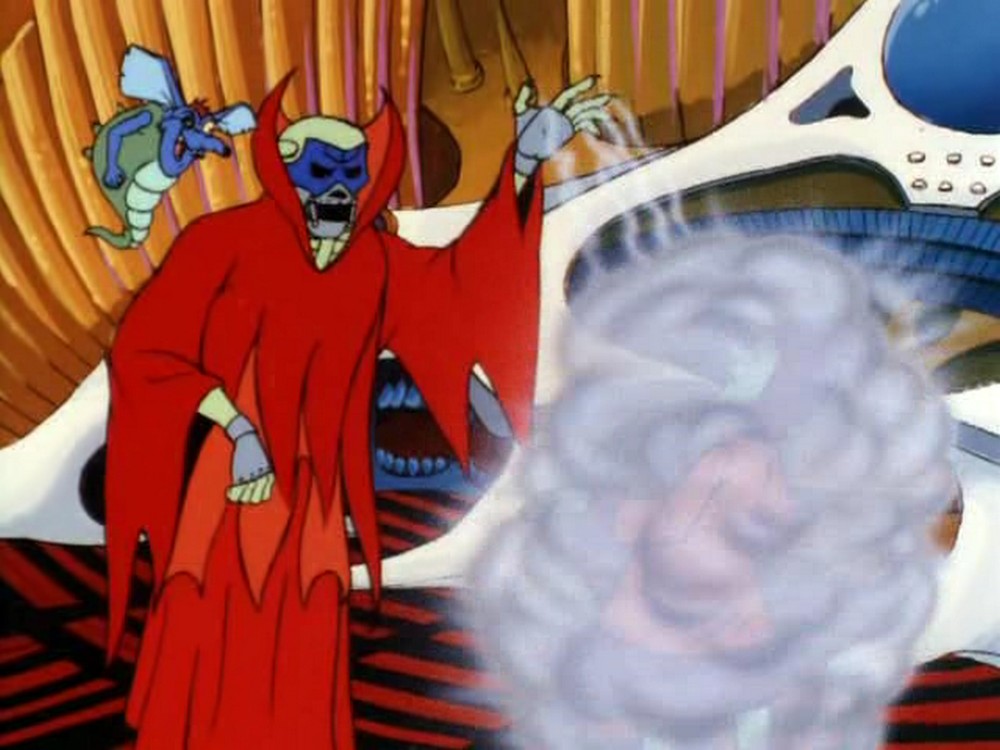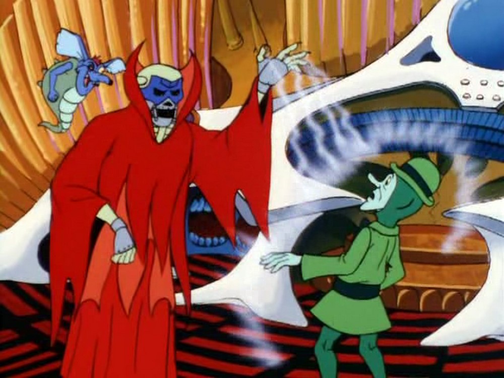 Noch in seiner Koboldkluft muß FibFace sich vor Prime Evil verantworten.