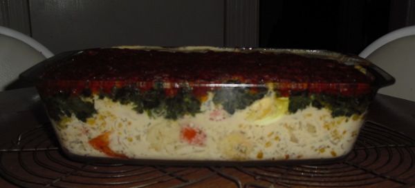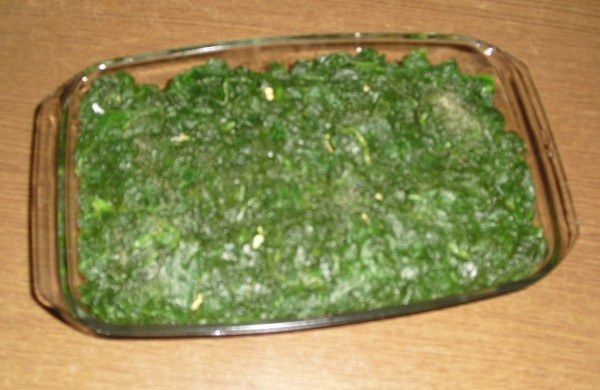 Als nächstes folgt eine Lage Spinat (das Bild ist etwas unscharf geworden).