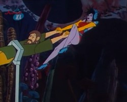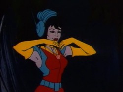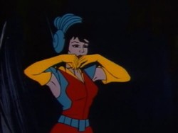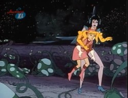Mit Hilfe Ihres Amuletts kann sie sich ebenfalls durch die Zeit teleportieren. Hier sind zwei Beispiele dafür, einmal nur für sich: