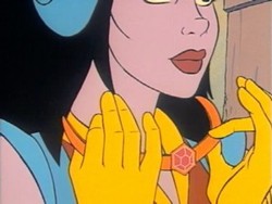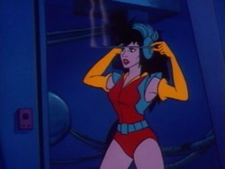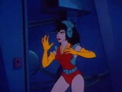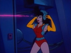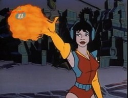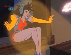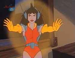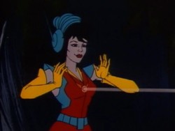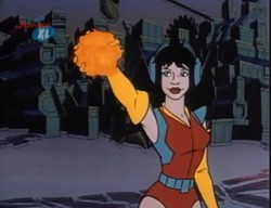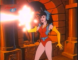 Aus ihren Händen oder Fingern kann sie einen Energiestrahl abfeuern. Auch aus den Antennen ihres Headsets heraus kann sie einen Energiestrahl auslösen.