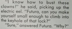 Im Tal des Mastodon hat Futura auch versucht, ihre Gruppe von der Insel zu teleportieren. Allerdings störte dort etwas ihre Kräfte, so daß es ihr nicht gelang. (Vermutlich wird sie beide Varianten ausprobiert haben: Teleportie und Telekinese.)