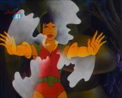 Sie kann sich unsichtbar machen. Hierzu benutzt sie ihr Multigem.