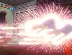 In diesem Beispiel wird Apparitia durch die zurückgeworfene Energie getroffen und dematerialisiert.