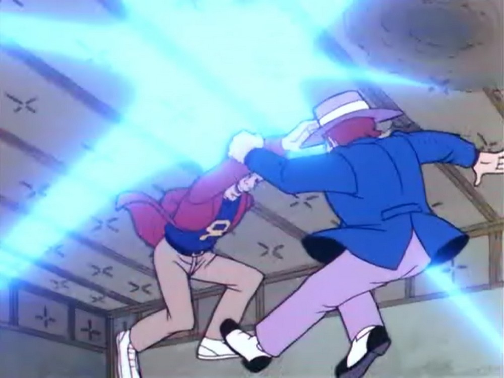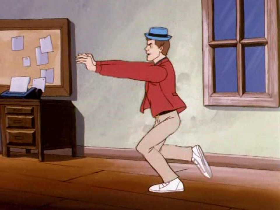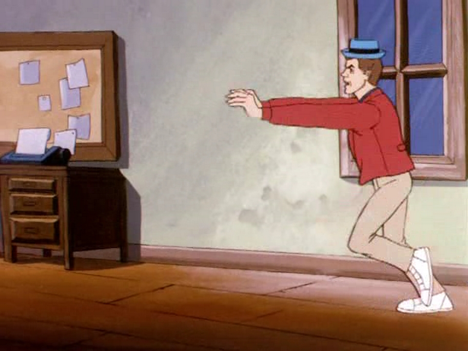 Die Herausforderung beginnt im Büro. Jake Kong Senior weiß, wenn das Ansabone klingelt, ist Eile geboten – bevor das Skelefon den Anruf selbst entgegennimmt. Nicht immer geht das gut – so wie hier: