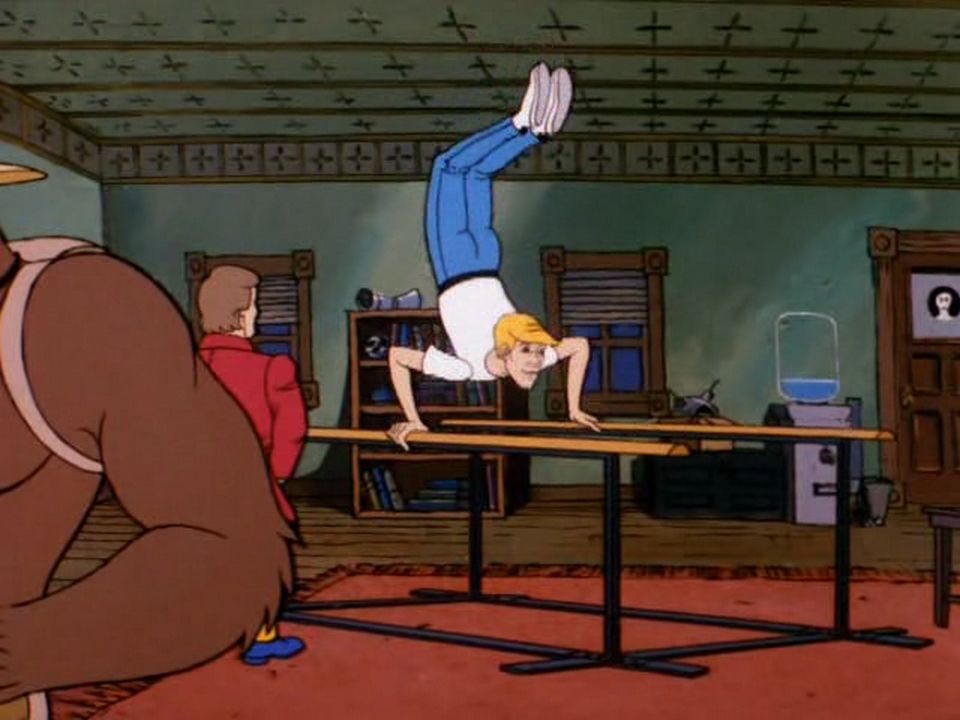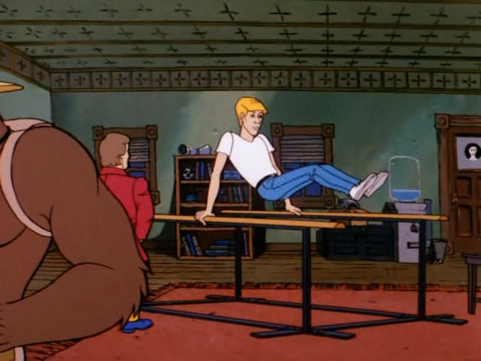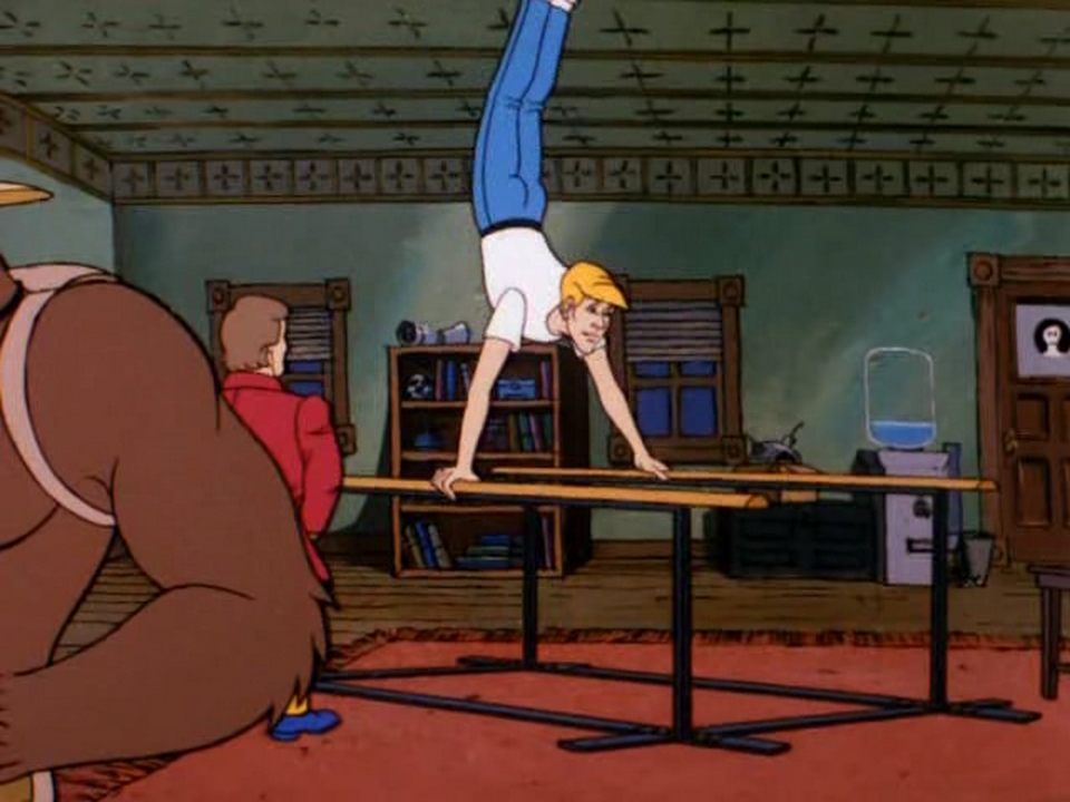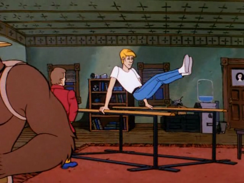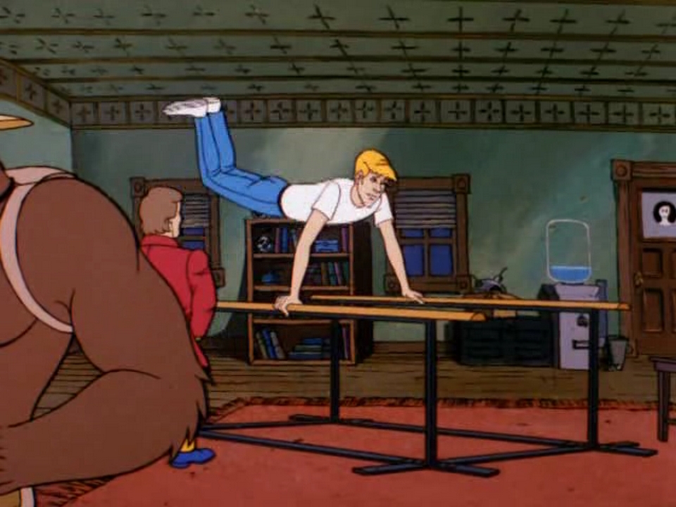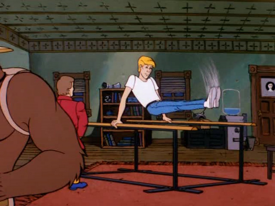 Gleiche Episode, hier im Einsatz: Weiß der Teufel, warum da in Hauntquarters ein Trampolin rumsteht…