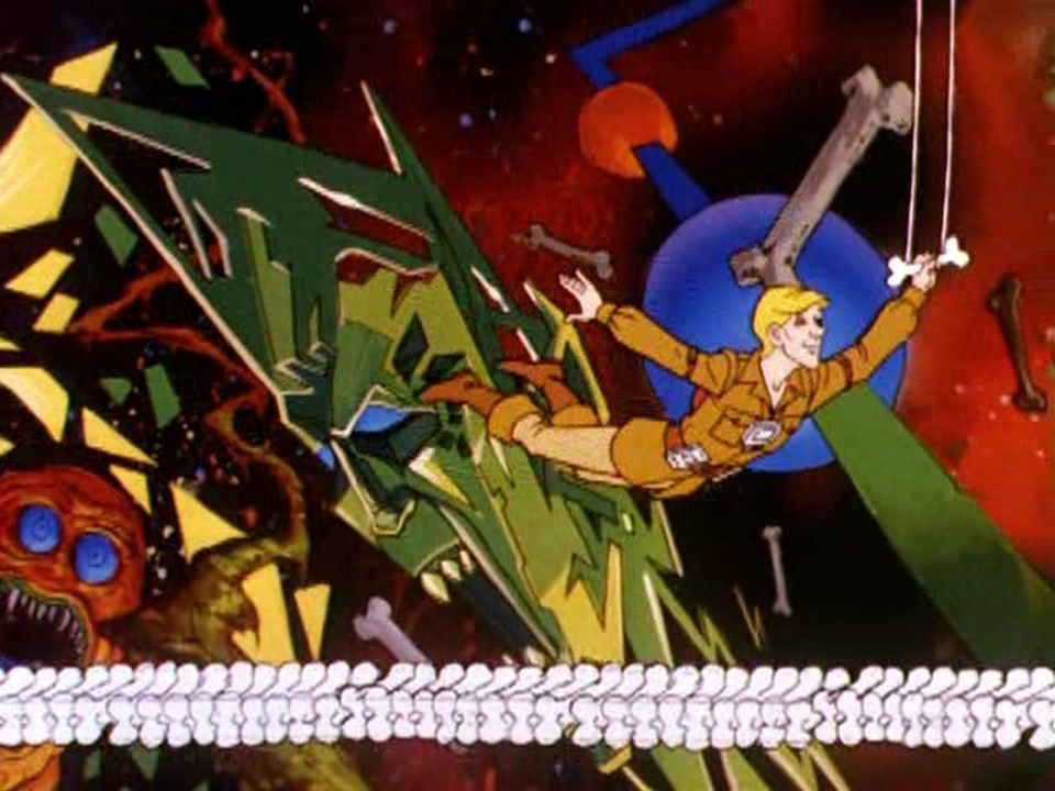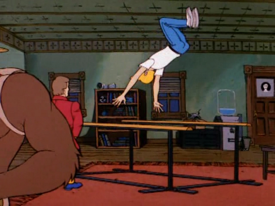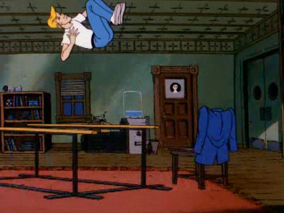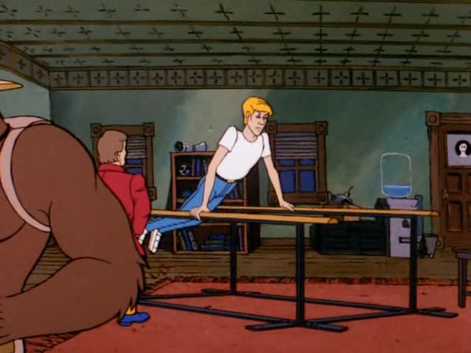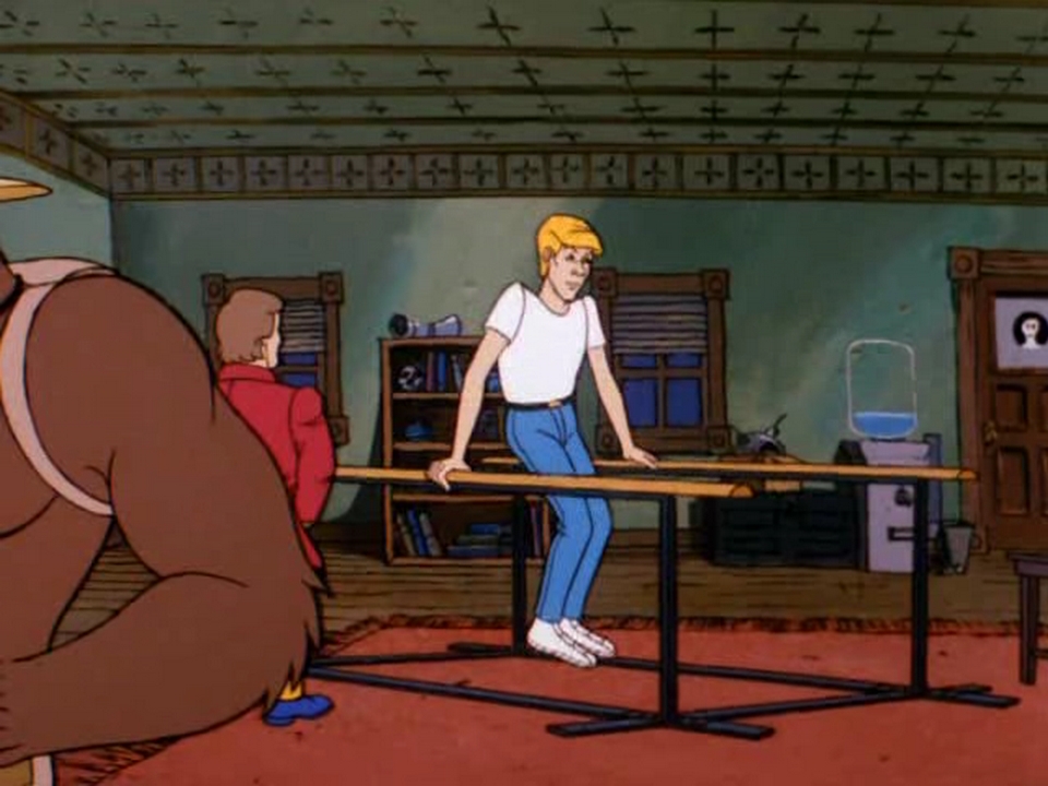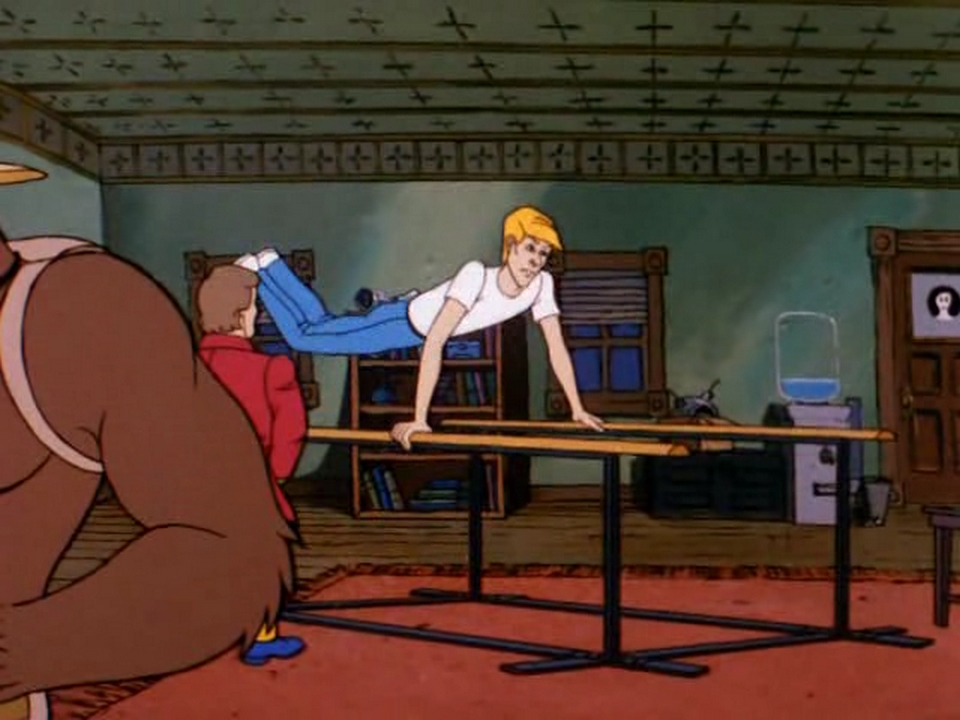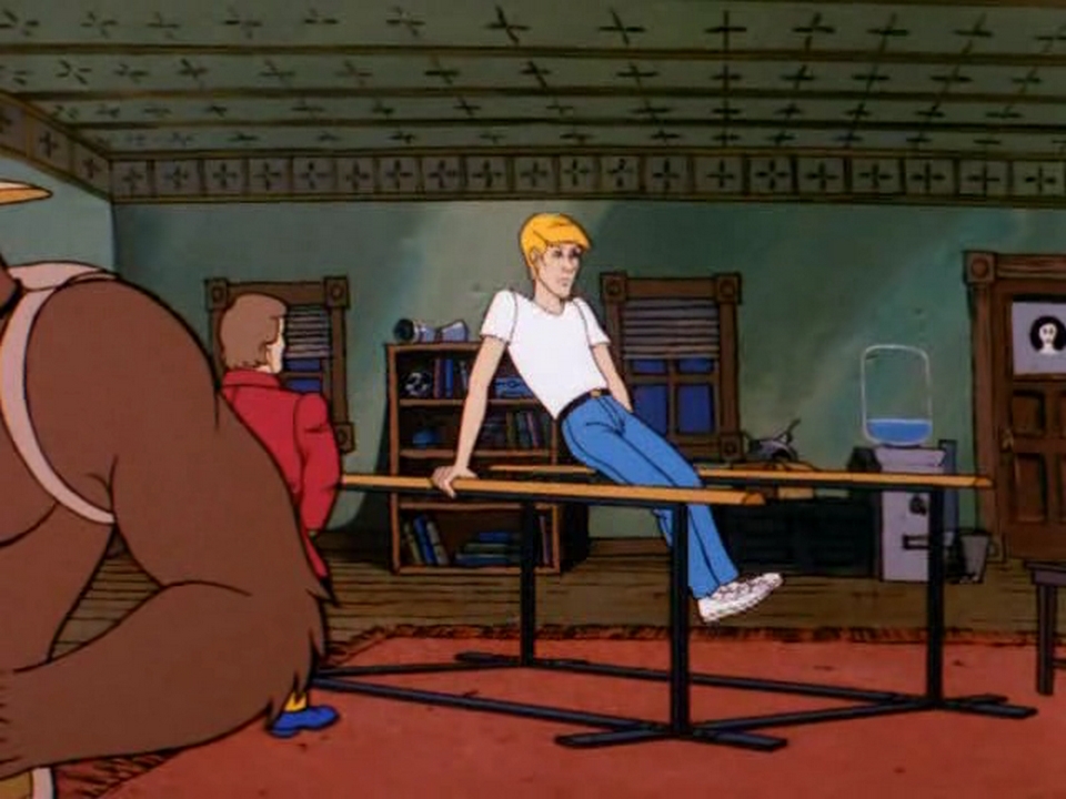 Gleiche Episode, hier im Einsatz: Weiß der Teufel, warum da in Hauntquarters ein Trampolin rumsteht…