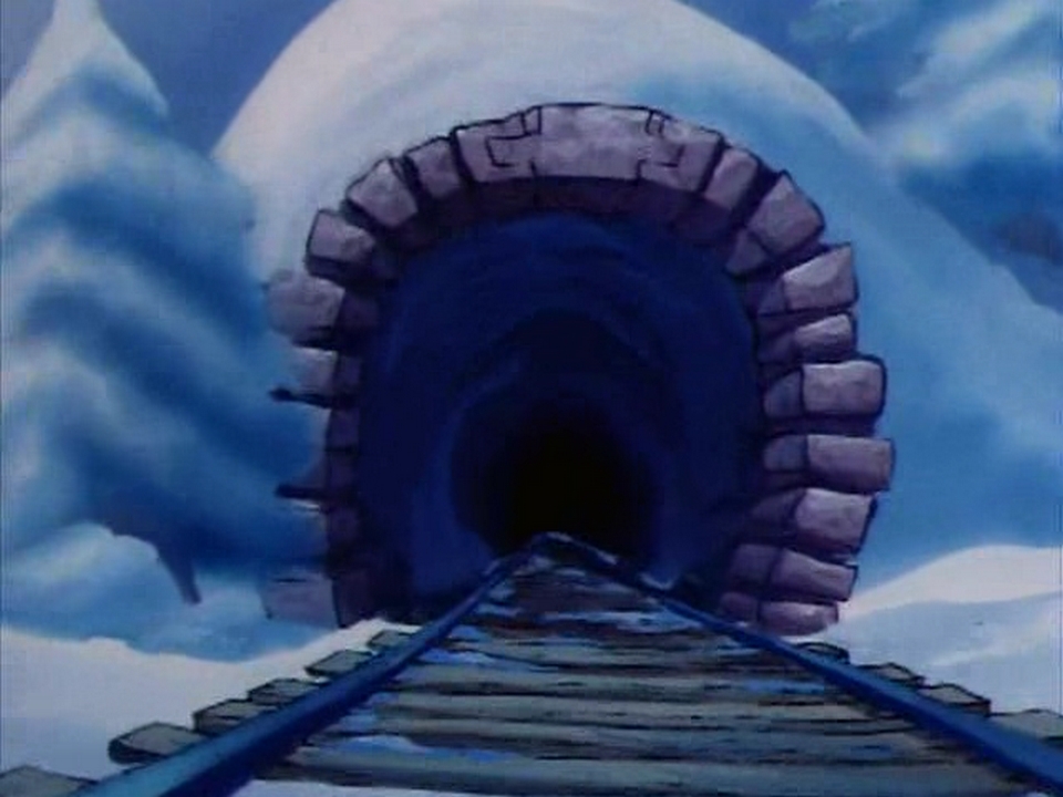 Hier hatte Jake auch allen Grund, Panik zu kriegen! Dank seiner schnellen Reaktion schafft er es aber, sich rechtzeitig auf das Zugdach zu werfen, bevor der Tunnel da ist.