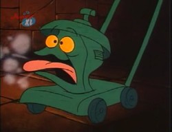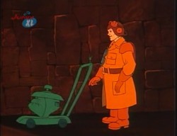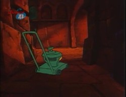 Die nächste Begegnung gibt es, als Madame Why nach Hauntquarters entführt wurde. Eddie bekämpft das Monster hier mit einem Rasenmäher.