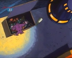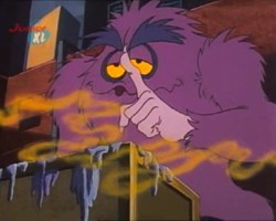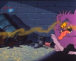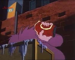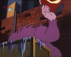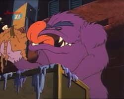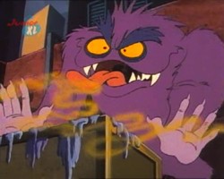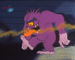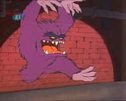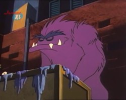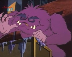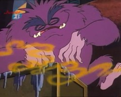 Hin und wieder taucht in den Episoden ein lila Monster auf. Ob es sich dabei immer um dasselbe Monster handelt, oder ob es mehrere von dieser Spezies gibt bleibt zu spekulieren, vor allem, weil dieses Monster an den unterschiedlichsten Orten unter den verschiedensten Umständen auftaucht. Ein Indiz dafür, daß es sich tatsächlich immer um ein- und dasselbe Monster handeln könnte ist, daß die Zahnstellung immer die gleiche ist.