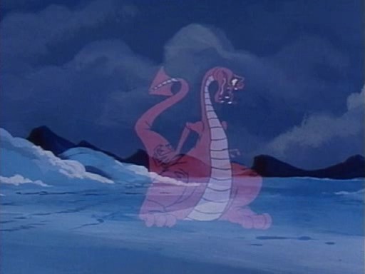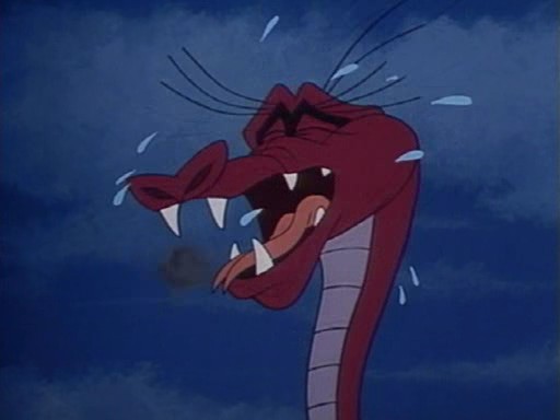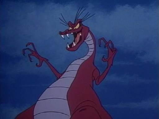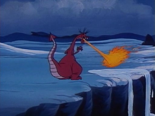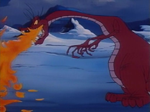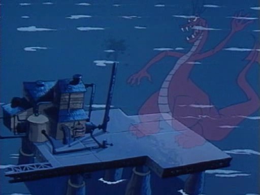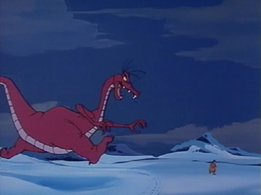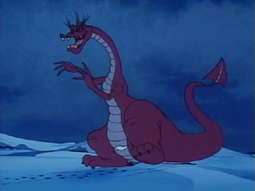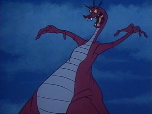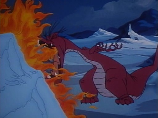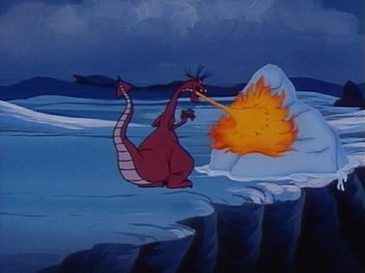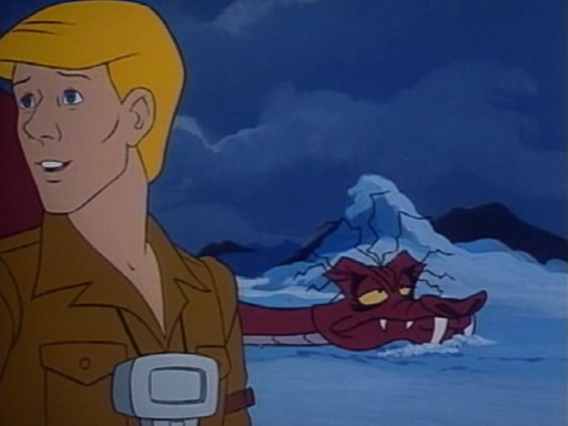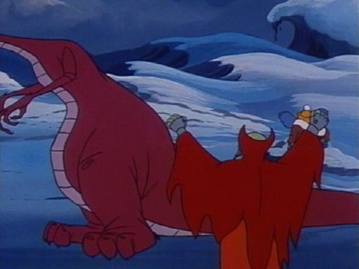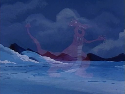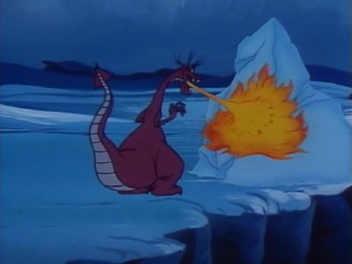 Deutlich von Sir Trancealots Sparky inspiriert, doch Prime Evils Öldrache ist ein Geist, zumindest in gewisser Form! Mit seinem Drachen will Prime Evil das Polareis schmelzen, um die Welt zu überfluten. Klappt ganz gut, soweit …