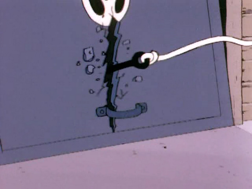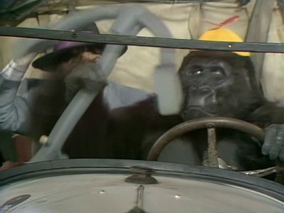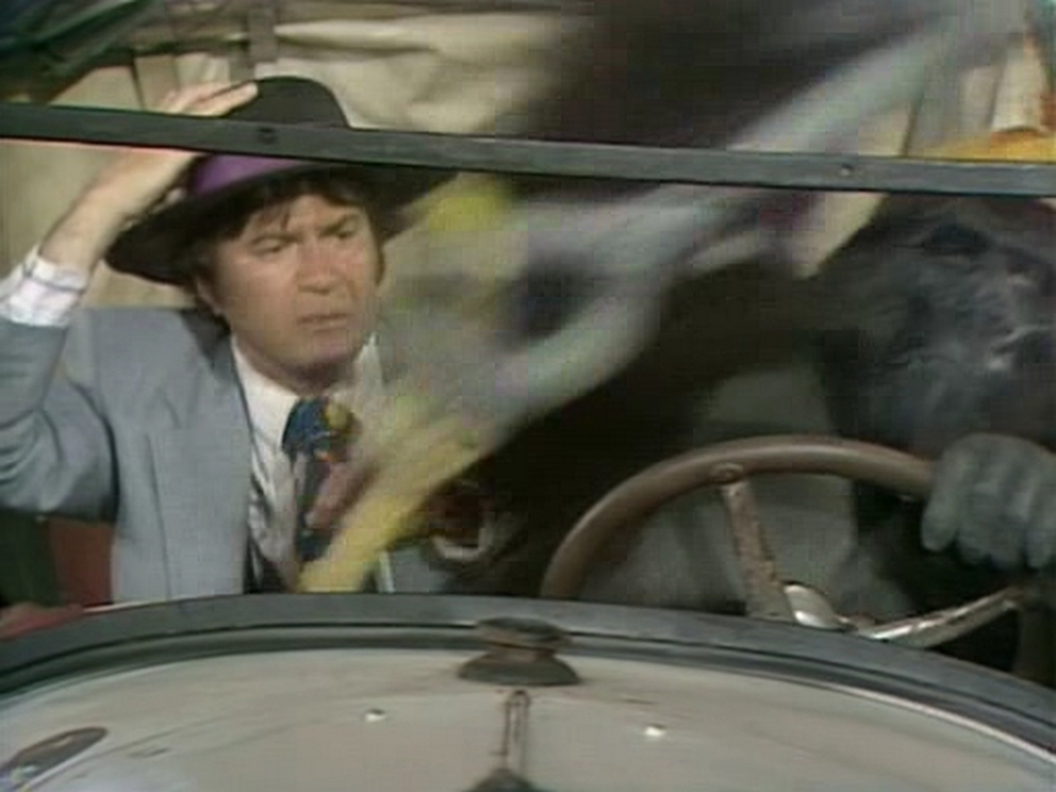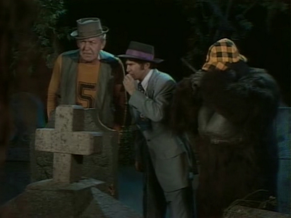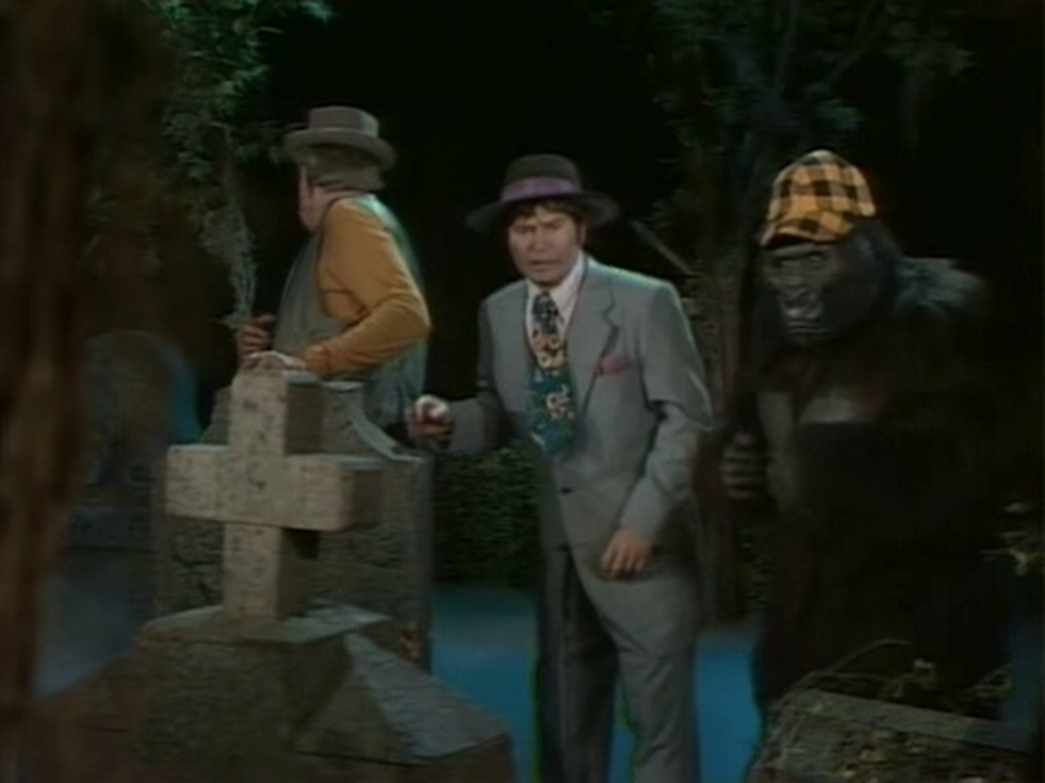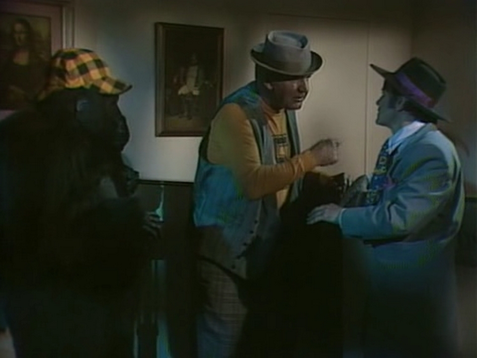 Kong (der davon ausgeht, seinen Partner und nicht den Geistergangster vor sich zu haben): „I still don't know what makes you think the maltese monkey is locked in a vault in this museum.”