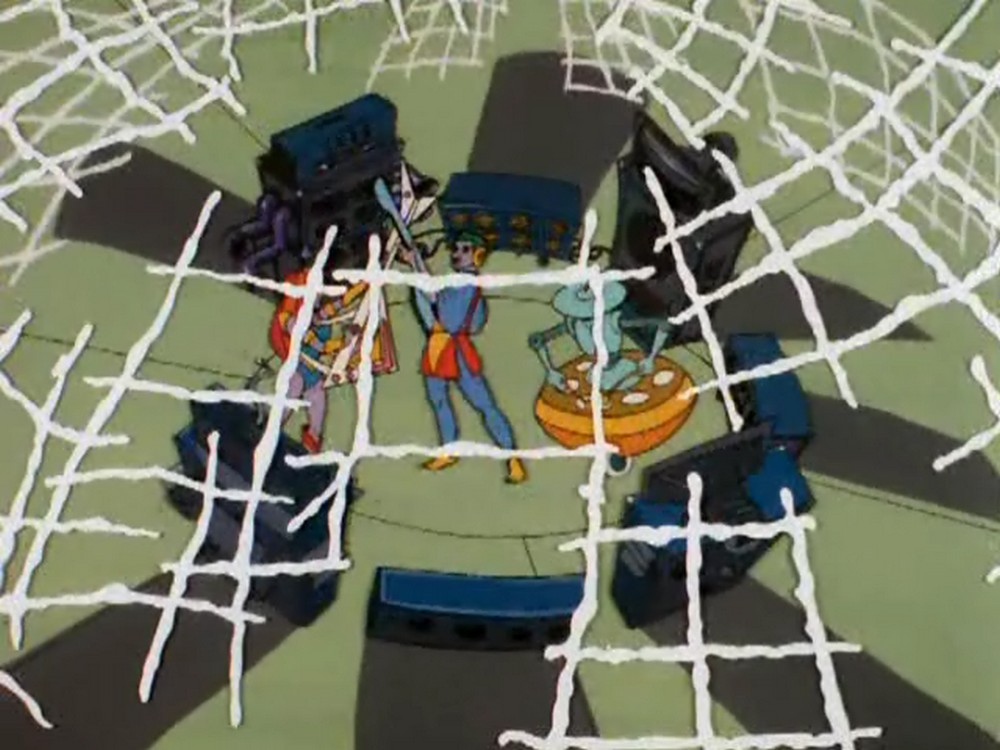 Jedoch handelt es sich um eine Falle von Futuras Widersacher Corpulon. Die drei behalten zwar die Nerven und gehen geschickt gegen die Handlanger des Geistes vor, können sich aber nicht lange behaupten - und schon bald sieht sich die Band festgesetzt auf der Bühne wieder.