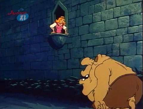 Gwendolin sieht ihr unfaires Verhalten dem Trol ggenüber ein und bedankt sich bei ihm. Ihr Kuß bricht schließlich Gimguls Bann.